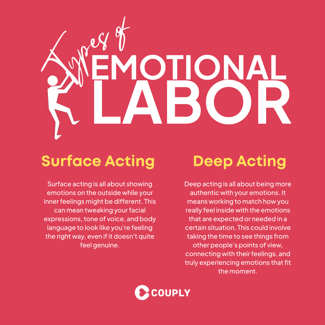 So, emotional labor isn’t just one thing — it actually comes in a couple of forms. Sociologists, including Dr. Arlie Hochschild (the one who first came up with the term), describe two main types: surface acting and deep acting.